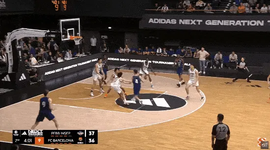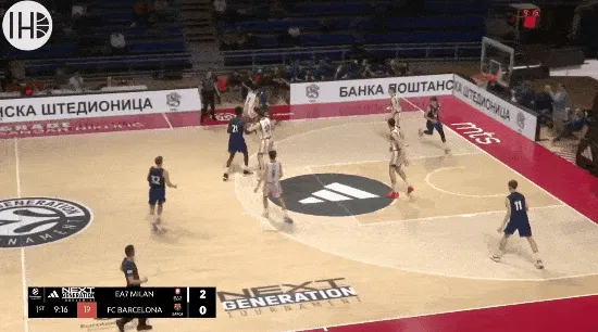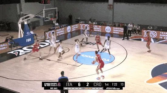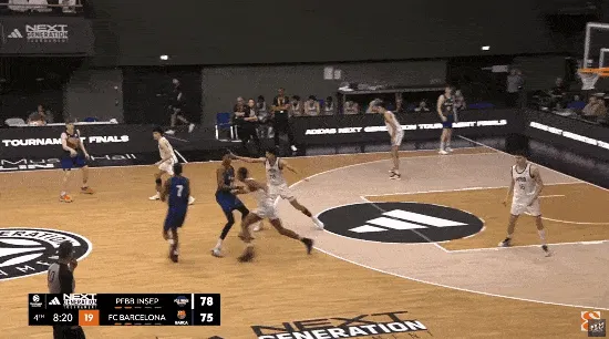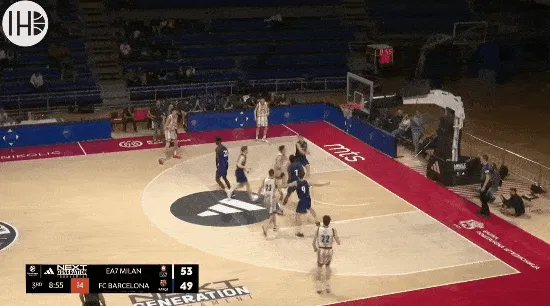 在过去的一年里,巴塞罗那的埃尔哈吉-达姆-萨尔(Elhadji Dame Sarr)已成为今年选秀里最炙手可热的国际名字。这位意大利的黑人前锋在耐克巅峰赛里测得的穿鞋身高为2米01,臂展接近2米12,身材精瘦但拥有惊人的弹跳和出挑的运动能力,虽然他的髋部有些僵硬,但其横移速度、臂展与弹跳的结合足以说服人们他具备过人的潜力。随着塞恩-詹姆斯的参选,这位身手全面的前锋可以接替前者的大部分任务,靠着定点投篮,接应突破和防守为球队的攻防两端带来影响。而他的无球空切,持球组织和接应出球的视野也能够在最大程度上接下塞恩去年的角色。作为一个万金油,他和哈梅尼亚理论上非常适配卡梅伦-布泽尔——后者的视野,单挑技巧和投射能力能够在杜克的5-out体系里牵制大量的防守,而萨尔能够借此得到大量空切和空位机会,有望更轻松地取分。