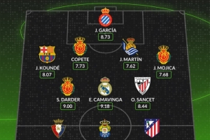 体育资讯4月15日讯 WhoScored评选出了西甲第三十一轮的最佳阵容,马洛卡三名球员入选。